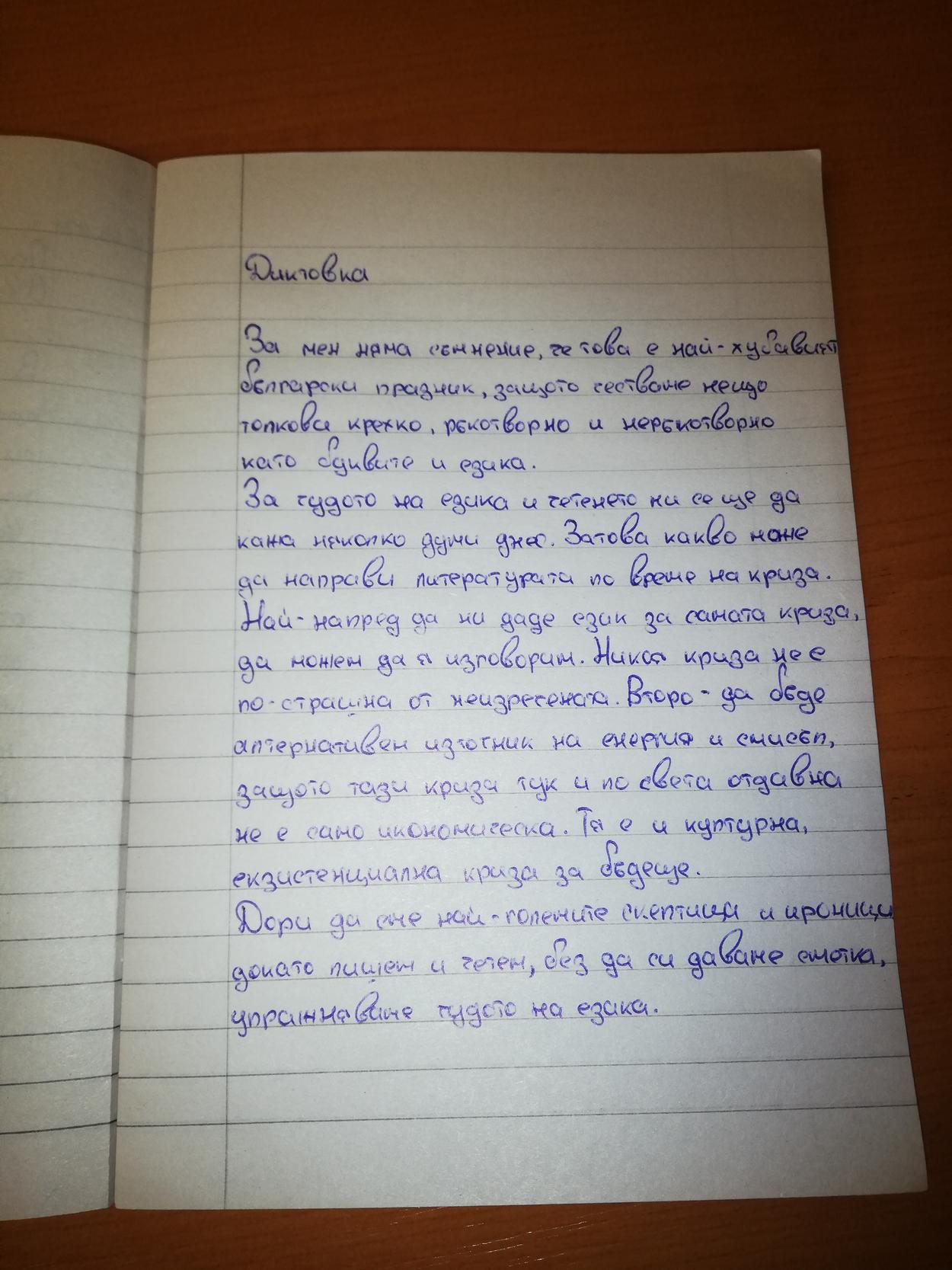 „Краткият текст постави на изпитание знанията на учениците, но и послужи като прекрасен езиков образец за упражнения по синтаксис в часа по български език.