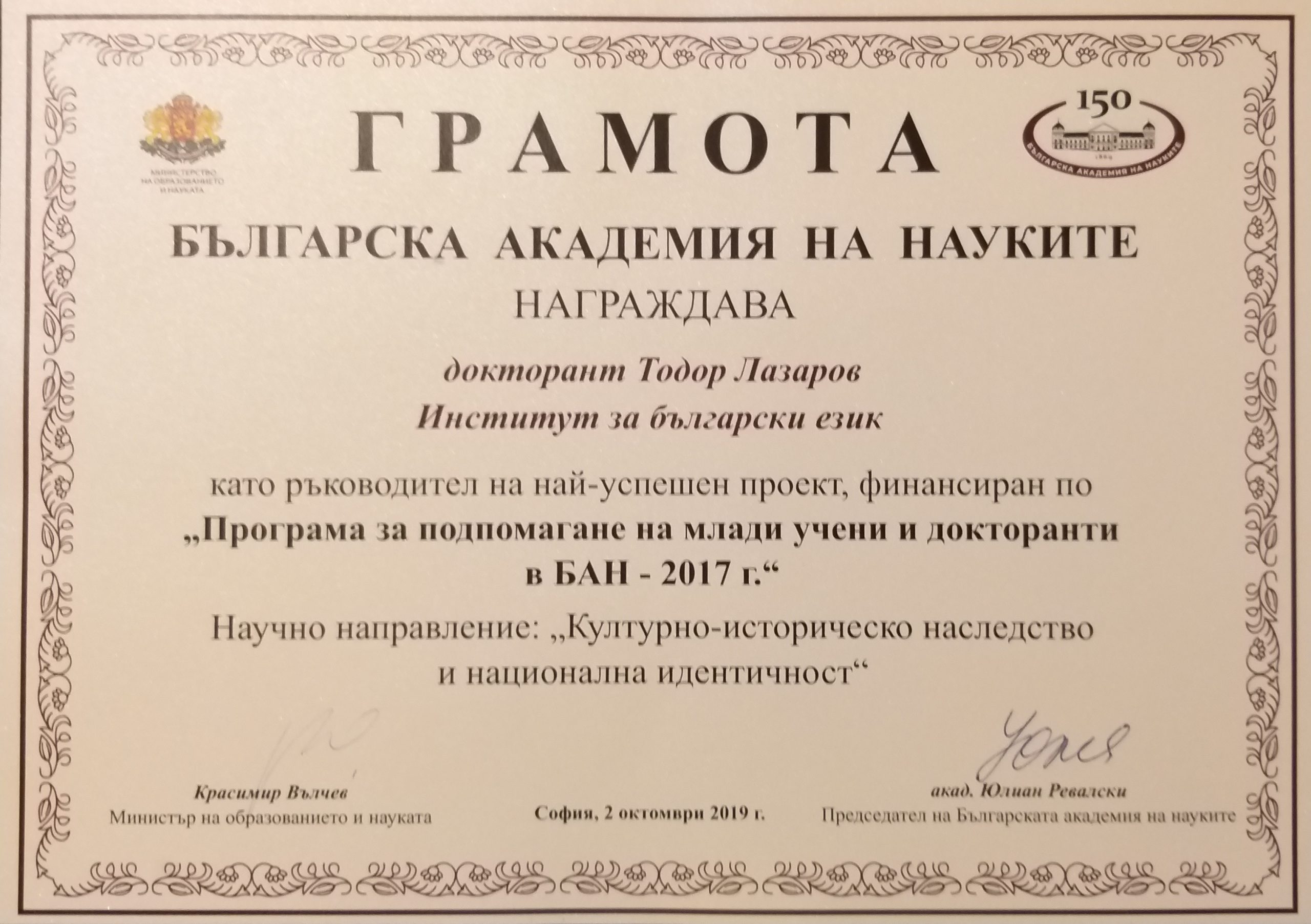 | 2.1 Филология | Общо и сравнително езикознание | 9,24 | 14.10.2026 г. |
