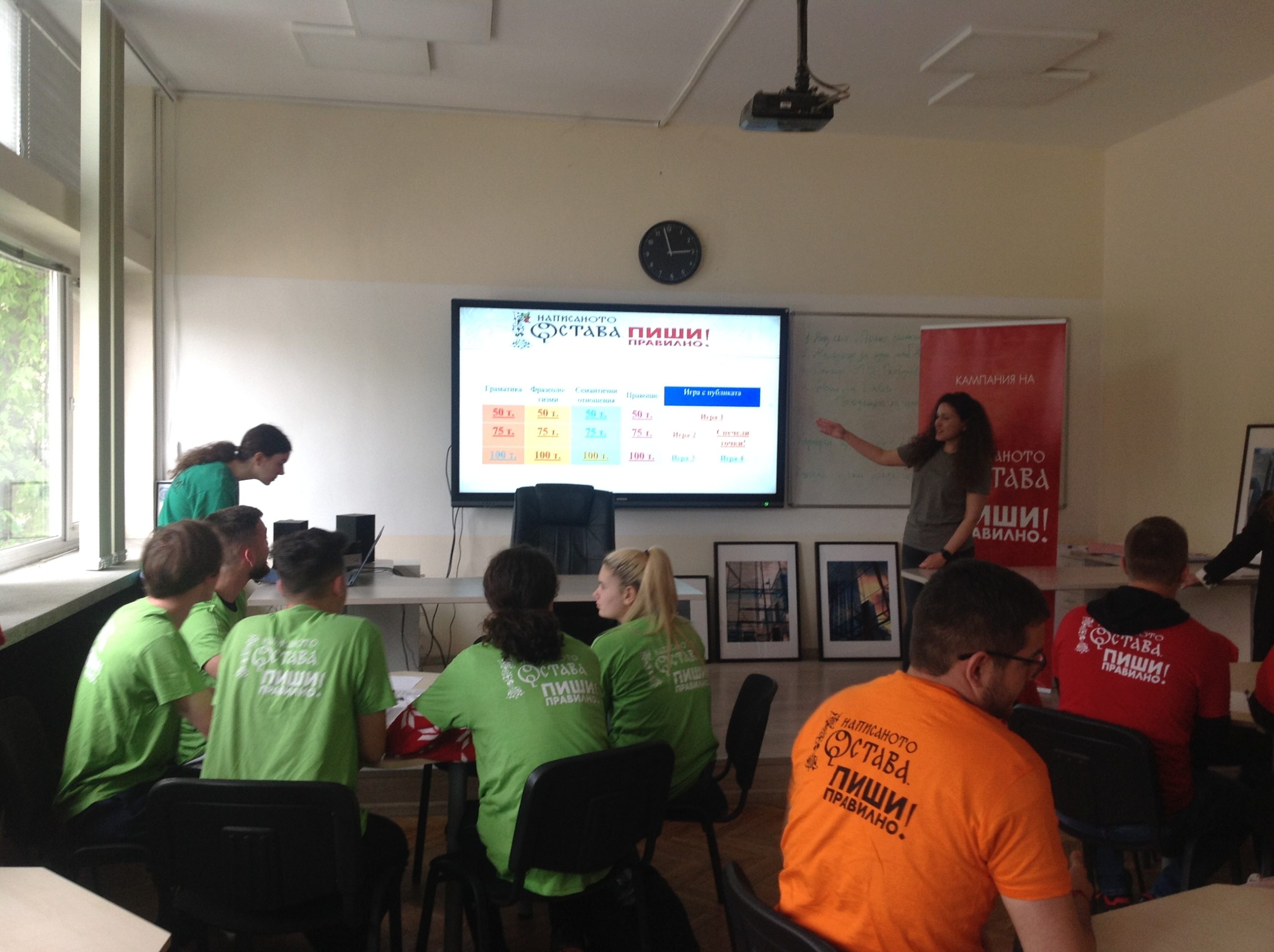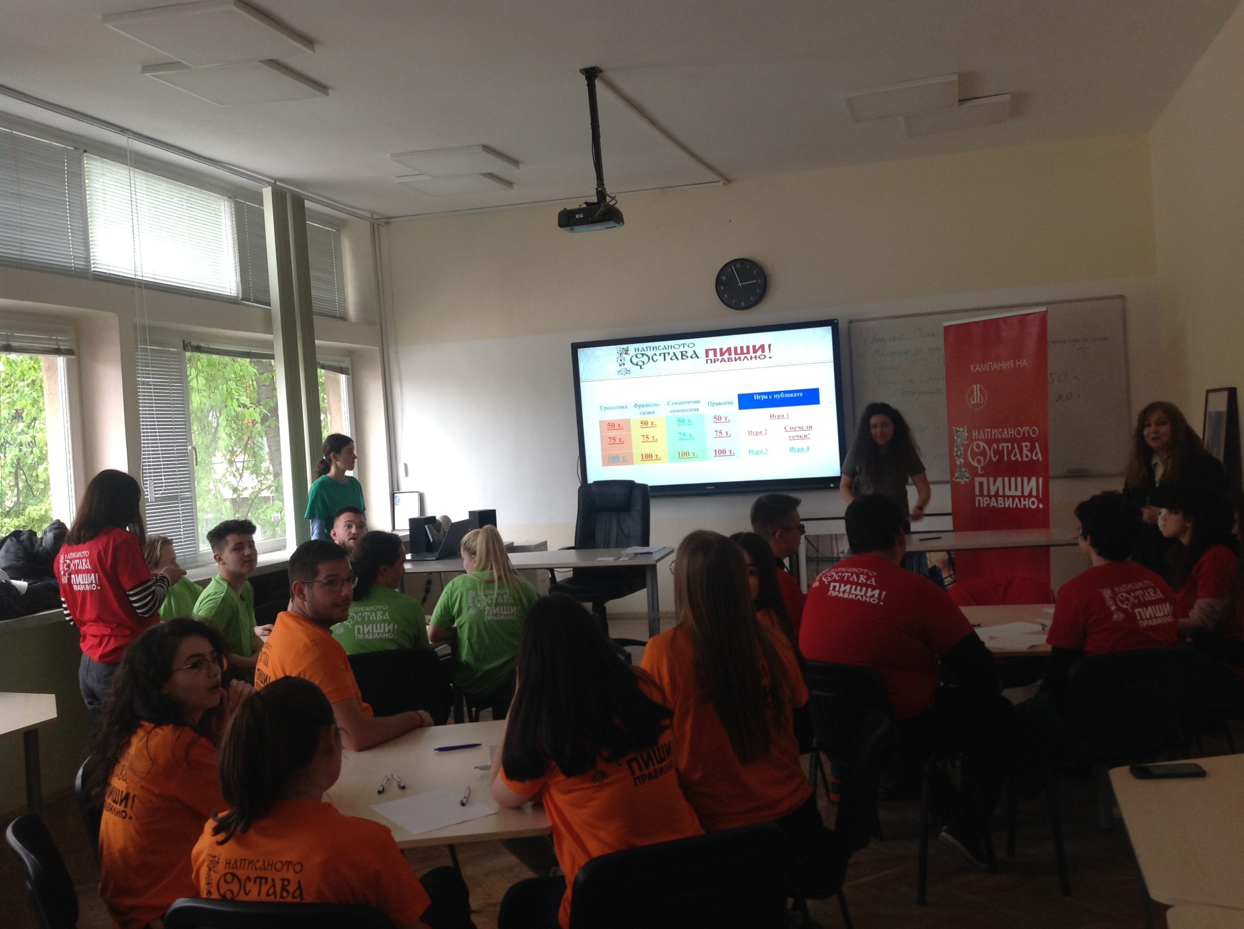 С ученици от 11. и 12. клас бе проведена забавна образователна викторина по български език. Въпросите бяха разпределени в четири категории: граматика, фразеологизми, семантични отношения и правопис. Учениците се състезаваха в три отбора и показаха много добри познания по български език, както и добри умения за работа в екип.