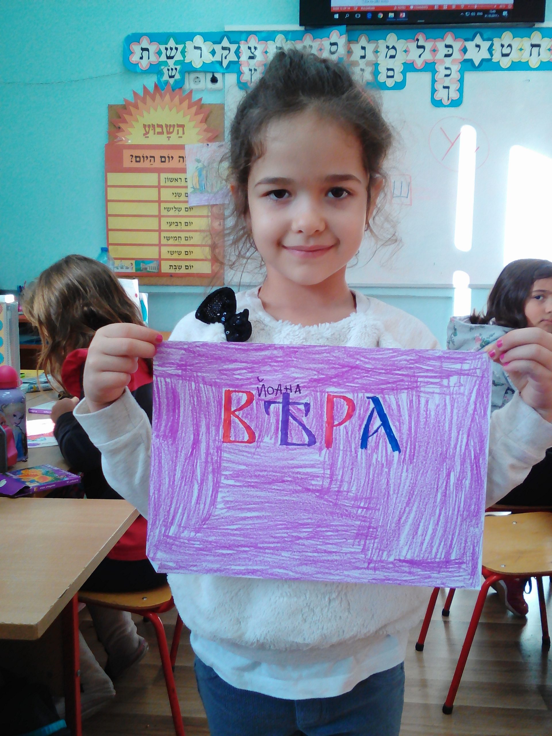 In marking the Day of the National Enlighteners, children from 134th Secondary School and the Educational Centre “Media” had the opportunity to learn more about Old Bulgarian alphabets and the work of Cyril and Methodius. On 30th, 31st October and 1st November 2017 researchers from the Department of History of the Bulgarian Language and the Department of Ethnolinguistics (prof. Mariyana Tsibranska, assoc. prof. Banya Micheva, assist. prof. Kalina Micheva and assist. Magdalena Abadzhieva) presented interesting facts about the creation of the first Slavic alphabet and the life of Cyril and Methodius. The children had the chance to see Glagolitic and Cyrillic manuscripts from the Middle Ages, to learn how books lived ages ago when there were no printers and modern technologies, as well as to read some words in Old Bulgarian. The celebration finished with one of the favourite activities of the children – drawing. They coloured special messages in Old Bulgarian.