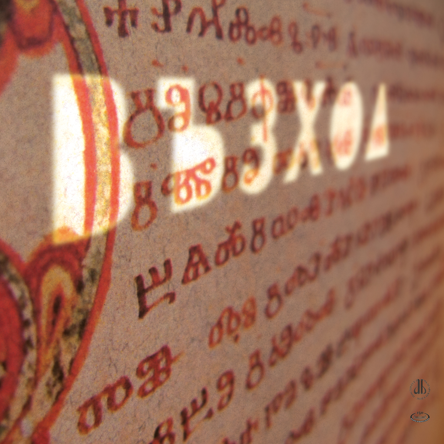 The Exhibition presents 20 images of Glagolitic letters and their counterparts in the Old Bulgarian Cyrillic script and in the modern alphabet. The letters comprise the words “българския” (Bulgarian), “дух” (spirit), “вечност” (eternity), conveying the message that the Bulgarian spirit is eternal. Below each image you can see the Glagolitic letters which have a correspondence in the Bulgarian alphabet. The Exhibition also includes 4 tableaus picturing the words “ние” (we), “светлина” (light), “добро” (good), “възход” (ascent), their letters featuring embeded elements from Old Bulgarian manuscripts.